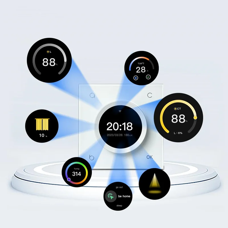 کلید مرکزی G-Core نسل جدیدی از کنترلرهای هوشمند است که با طراحی دکمه چرخشی (Rotary Knob) و نمایشگر رنگی ۱٫۲۸ اینچی، امکان کنترل کامل تجهیزات، سناریوها و سیستمهای خانه هوشمند را به سادهترین شکل فراهم میکند.این دستگاه بهعنوان مرکز فرمان خانه هوشمند، توانایی مدیریت سناریوها، ارتباط با سنسورها و کنترل از راه دور را حتی در حالت آفلاین دارد.