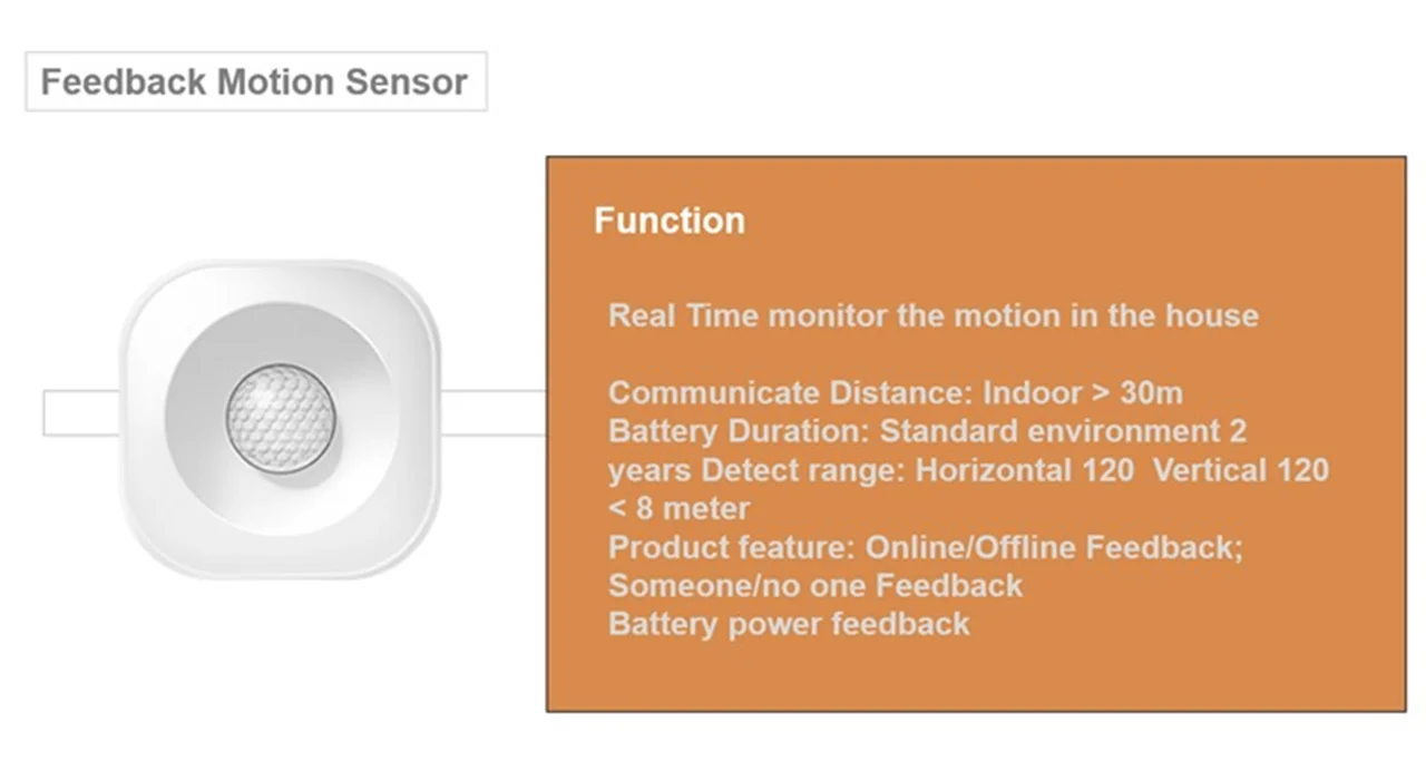- زاویه دید ۱۲۰° افقی و ۱۲۰° عمودی، تا فاصلهٔ حدود ۷ متر.